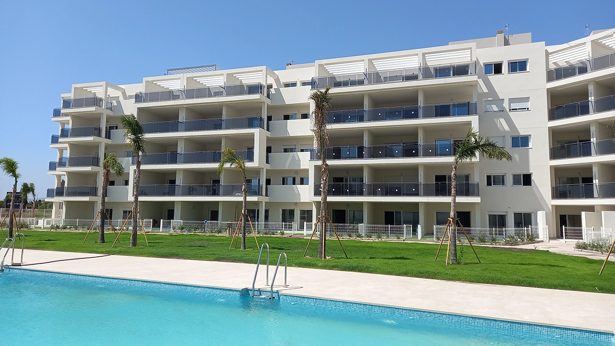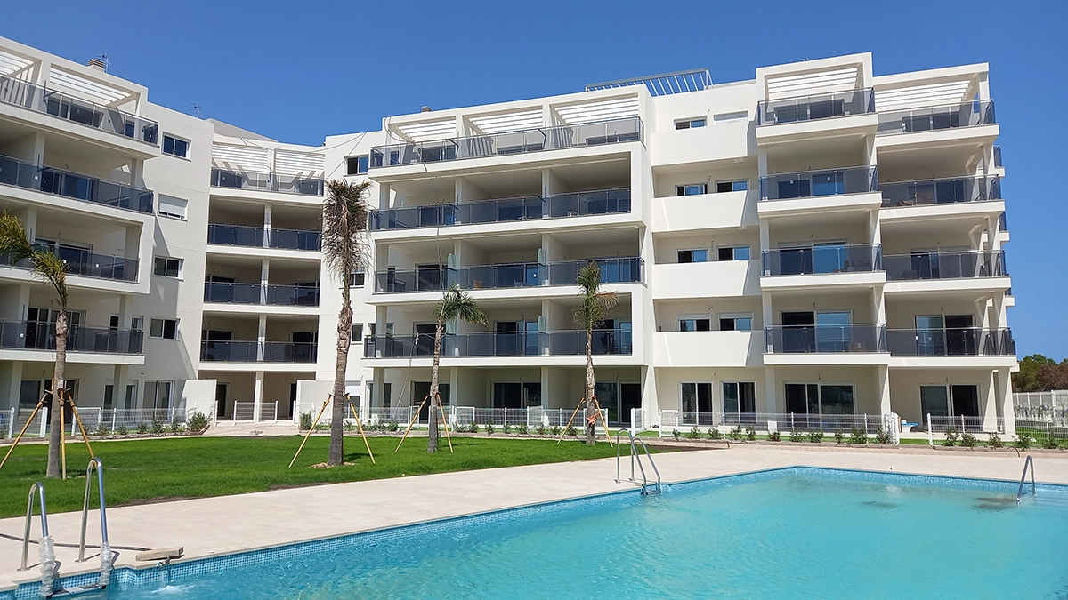Continuará con la misma línea de diseño y acabamos que tan gran aceptación tuvieron en las dos Fases previas, con viviendas de 2 y 3 dormitorios con plaza de garaje, amplias terrazas, 2 cuartos de baño, A/A frío-calor, ACS por aerotermia, cocina amueblada, iluminación LED, armarios empotrados… Sus zonas comunes dispondrán de 2 piscinas, pista de pádel, zona infantil, miradores, jardines y cuartos de baño comunitarios. Visite piso piloto para más información.